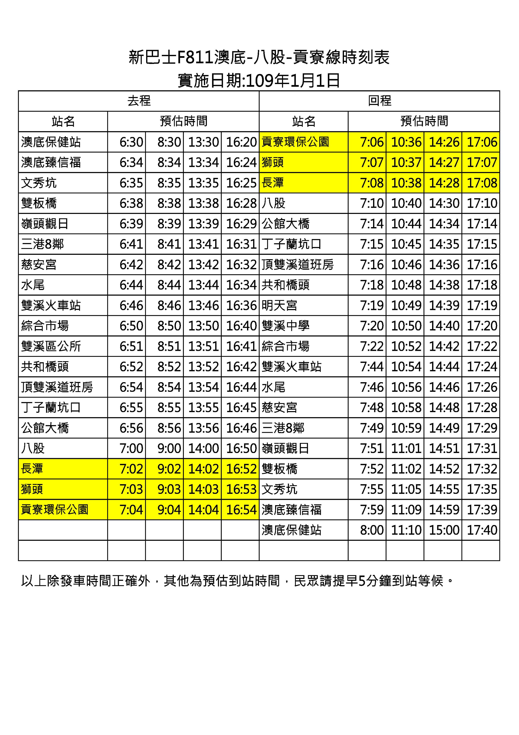新巴士時刻路線說明檔(此檔案為下列圖表之內容)