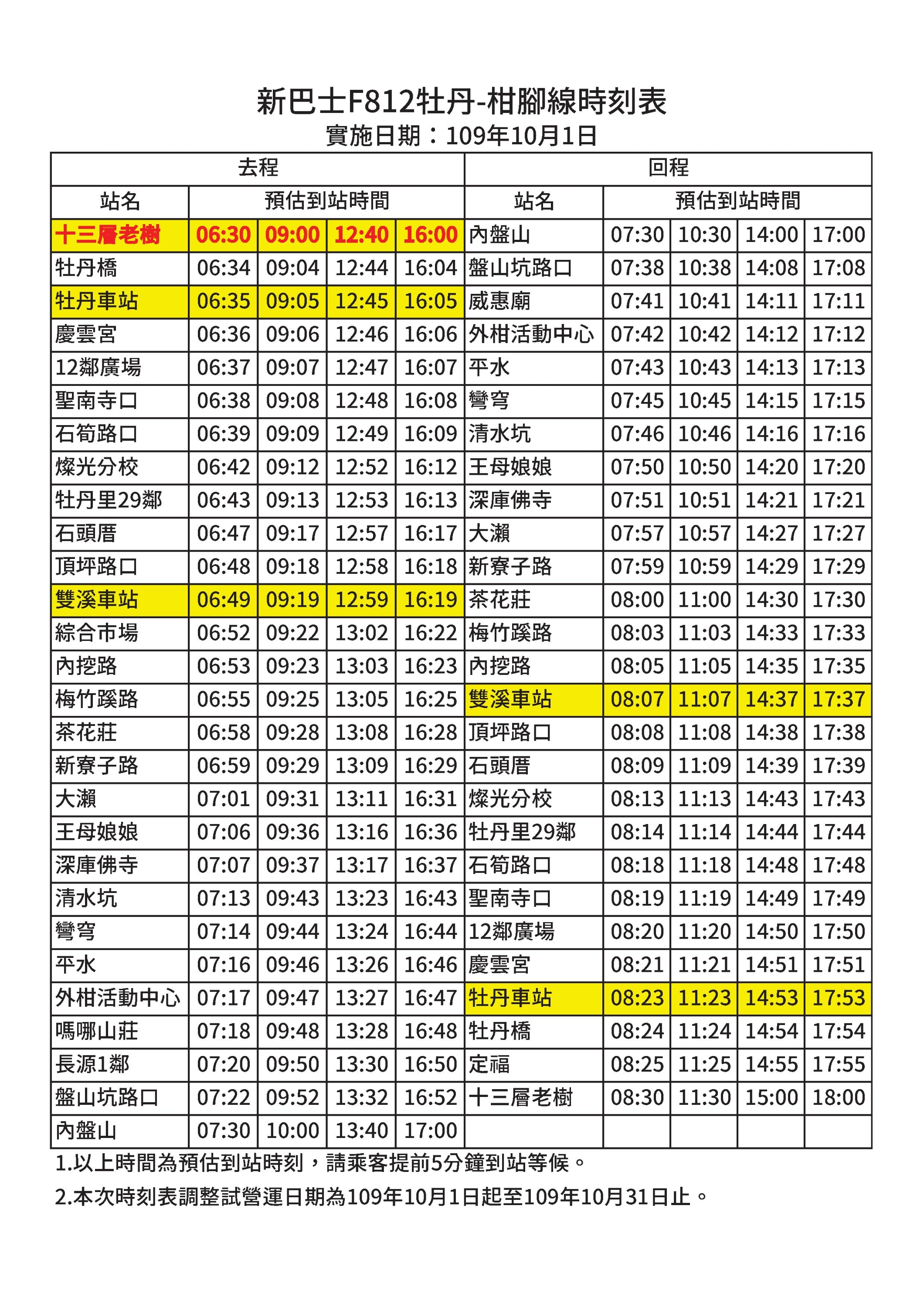 F812牡丹-柑腳線115年1月1日生效