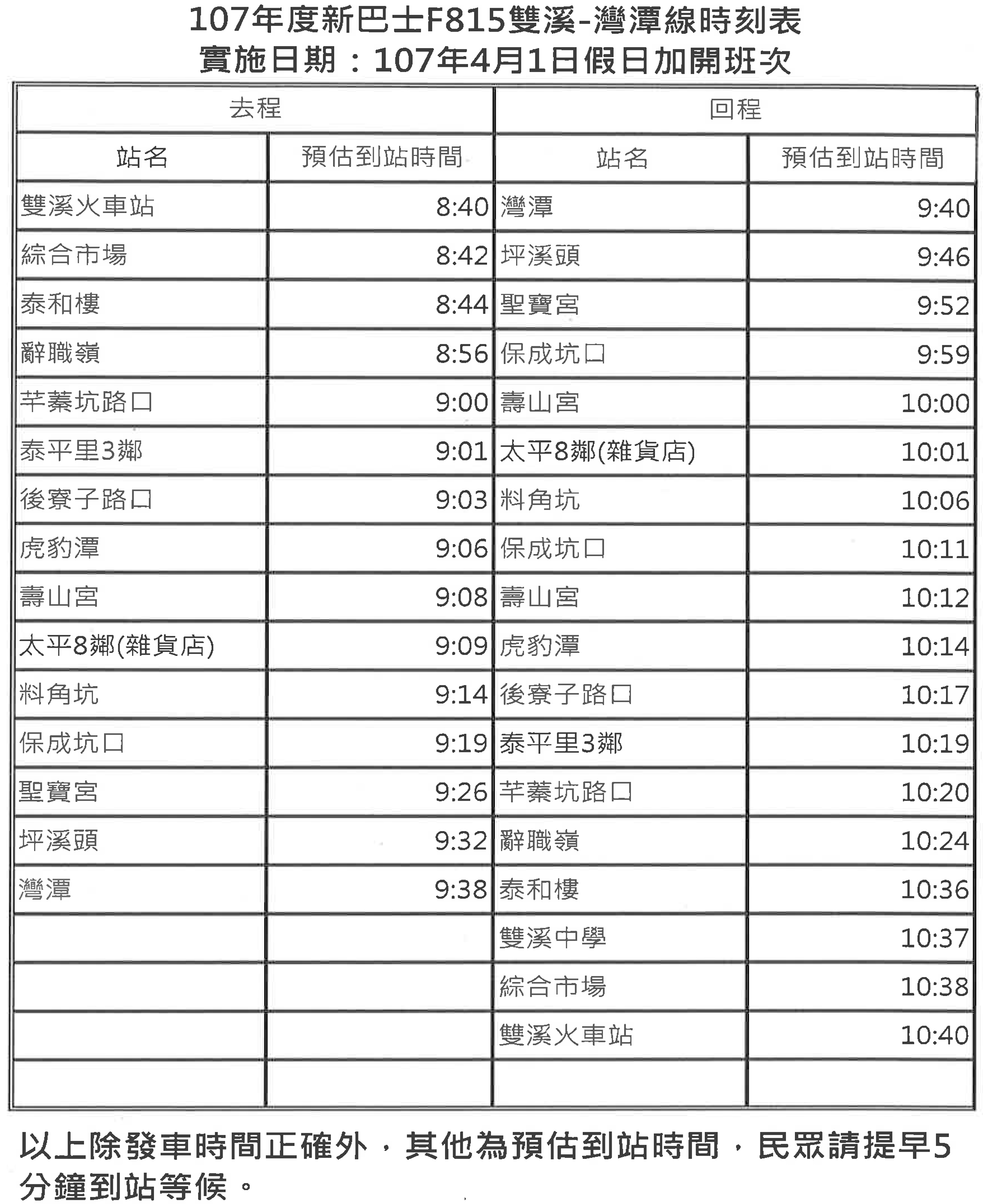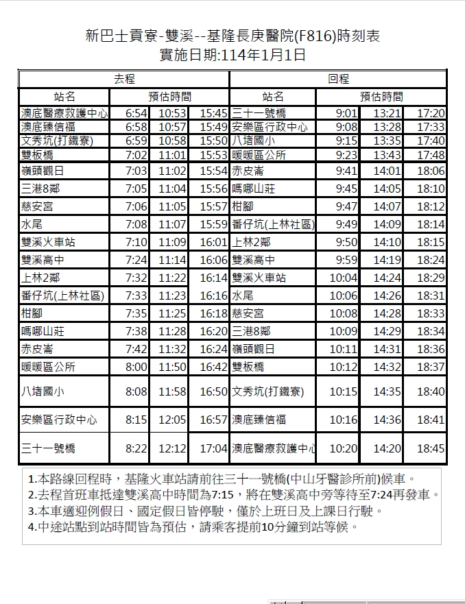 F815雙溪-灣潭線(假日線)