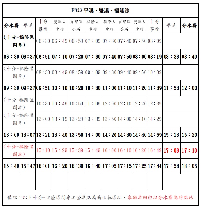 F823最新時刻最終以平溪區公所公告為準